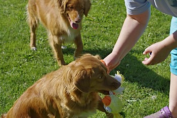 Today is Cora 3 years old. She ate the cake with Rosie and Fany and the best present was a little sqeeking ball. Happy Birthday, Cora!